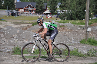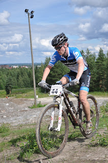 Maratonin SM kisoihin starttasin hiukan epävakaisin fiiliksin. Koko viimeyön kävin hirveillä ylikierroksilla Tähtisadeajojen maksimi ajon jälkeen ja nukuinkin koko yönä jopa 3 tuntia, tunnin jaksoissa. Palautuminen ei siis ollut sitä mitä olin odottanut. Herätys oli klo 04:30 ja aamun testilenkin perusteella jalat olivat kohtuullisen hyvän tuntuiset. Todellisuus oli kuitenkin toinen. Lämmiteltäessä jo huomasin, että ei saa isoja watteja helposti irti. 300watilla tuli kyllä ajettua helposti, mutta enempää ei vain irronnut sitten millään. Ajoin ensimmäisen kierroksen kulomäkeen kärjen mukana. Kulomäessä ei vaan saanut tarvittavaa wattimäärää, että se olisi noussut rennosti. Ekalla kierroksella se meni ajamalla ja toisella ja kolmannella jouduin taluttamaan jyrkimmän kohdan. Vertailun vuoksi kerrottakoon, että edellispäivän Tähtisadeajoissa pitkät mäet nousivat suhteellisen kivuttomasti 500watilla, mutta nyt en saanut isoimpaan ja pisimpään mäkeen 300wattia enempää tehoa. Oikeastaan pystyin ajamaan 300watilla kokoajan, mutta enempää ei meinannut saada millään irti. Ajo ei tuntunut, edes pahalta, mutta ei vaan saanut kampea pyörimään riittävän kovaa. Saatiin kuitenkin kärkiletka kiinni ja pystyin ajamaan kärjen mukana vielä Kulomäen esinousuihin saakka kunnes tipuin. Sen jälkeen saikin ajella yksin aina toisen kierroksen loppuun saakka kun takaa tuli jo rengasrikon ekalla kierroksella kärsinyt Jussi Veikkanen. Ajettiinkin Veikkasen kanssa vuorovedoilla aina kulomäen esinousuihin saakka, missä tipuin nyt jo toistamiseen. Saatiin kuitenkin Veikkasen kanssa ajaessa tehtyä lisää eroa takana tuleviin ja pienennettyä edellämeneviin. Kulomäessä näkyikin jo seurakaveri Jussi Laurila ja vähän ajan päästä ajettiinkin Laurilan kanssa vuorovetoa. Viimeisellä polkupätkällä Laurila tippui ja ajoin sitten vain tempoasennossa maaliiin sijalla 14. Eihän tuollainen sijoitus tyydytä varsinkin kun edellinen päivä oli huippupäivä, mutta tiesin sen että seuraavana päivänä voi kulku olla kehnoa, kun edeltävänä päivänä on ajettu reilu 2h kisa täysiä.